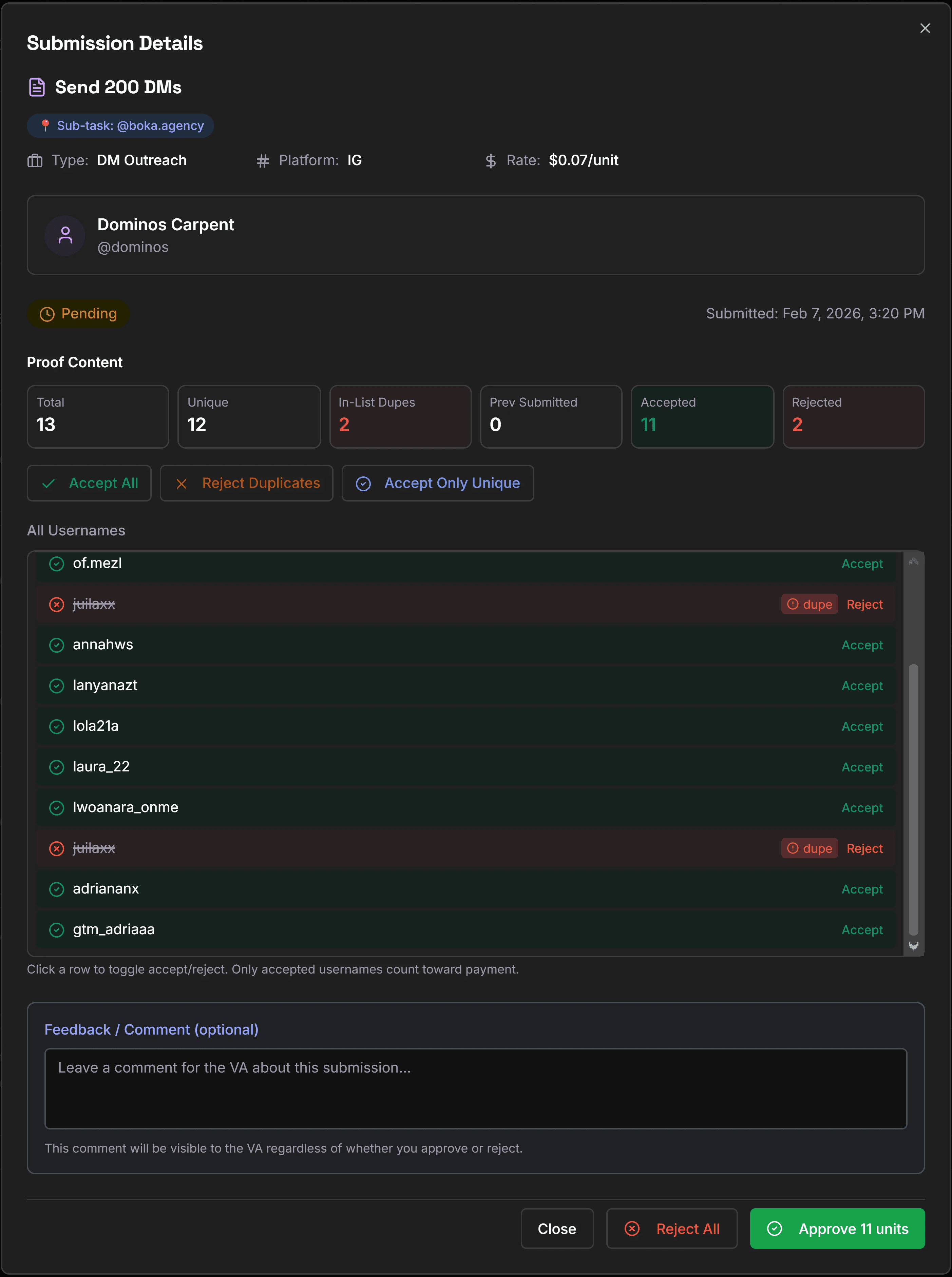 Create tasks for your VAs and require proof of work for every action. No screenshots lost in chats. Everything stays in one place.